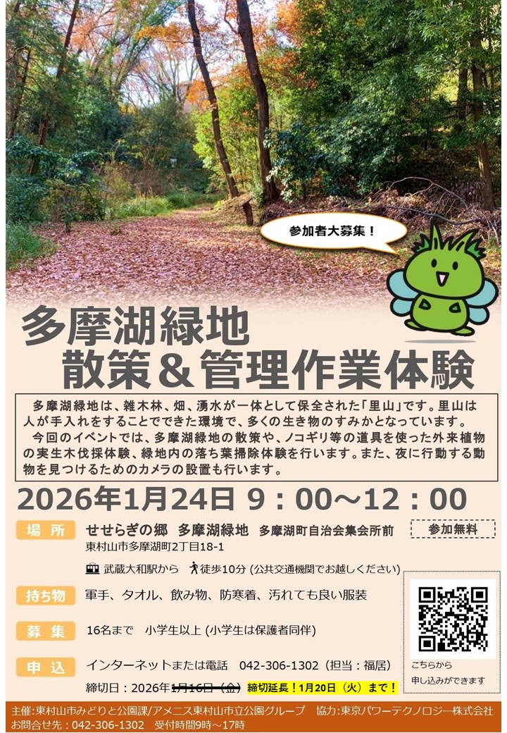 アメニス東村山市立公園グループが東村山市内の公園を中心とした172施設の管理運営を行っています。市民の目線に立ち、市民の方々とともに公園を起点としたまちづくりに努めてまいります。 アメニス東村山市立公園グループ 株式会社日比谷アメニス/相羽建設株式会社/大和リース株式会社東京本店
