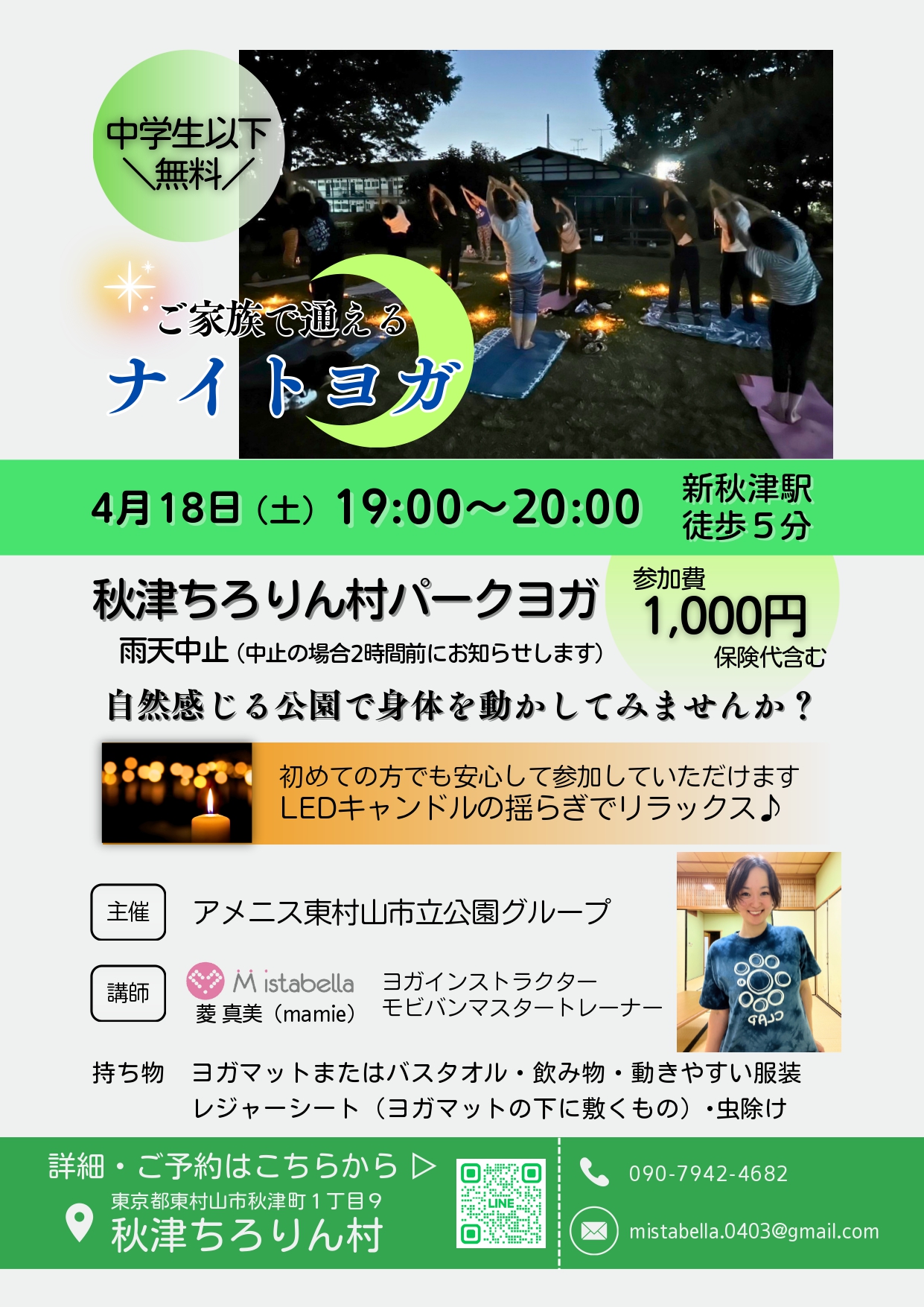 昨年度も好評だった秋津ちろりん村パークヨガが帰ってきます!
