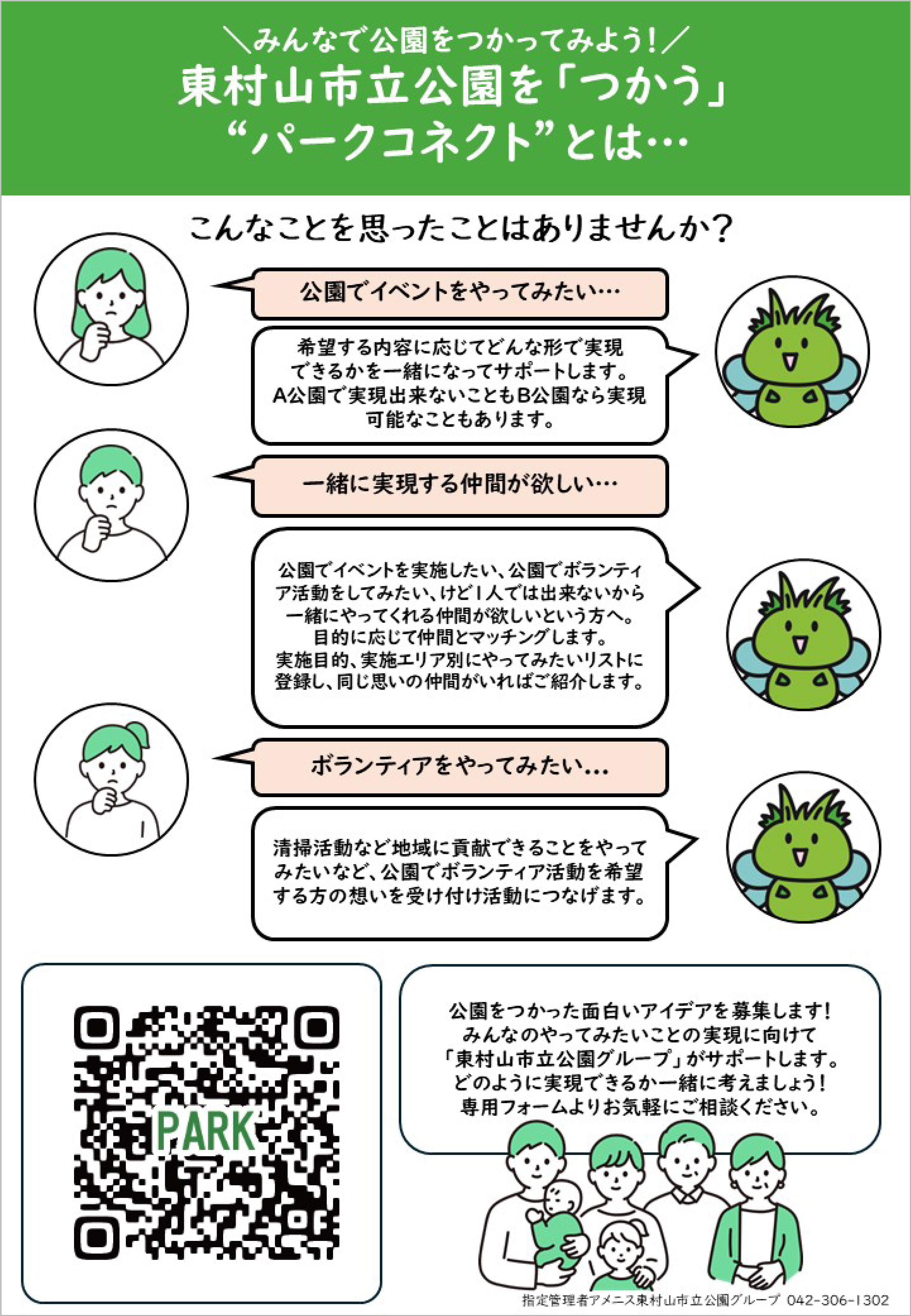 そんなみなさんの「やってみたい」の実現に向けて東村山市立公園グループがサポートします。